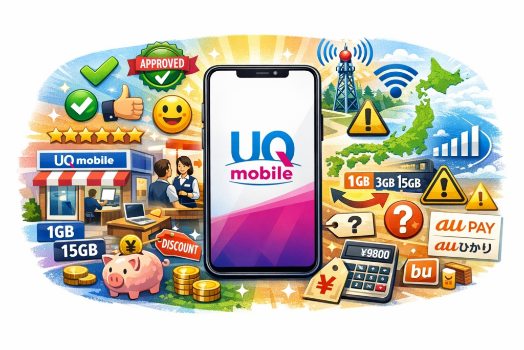 UQモバイル(UQ mobile)の良い点・悪い点を正直にレビューします。「auのサブブランドって実際どうなの?」という疑問に答えながら、向いている人・向いていない人をはっきりお伝えします。